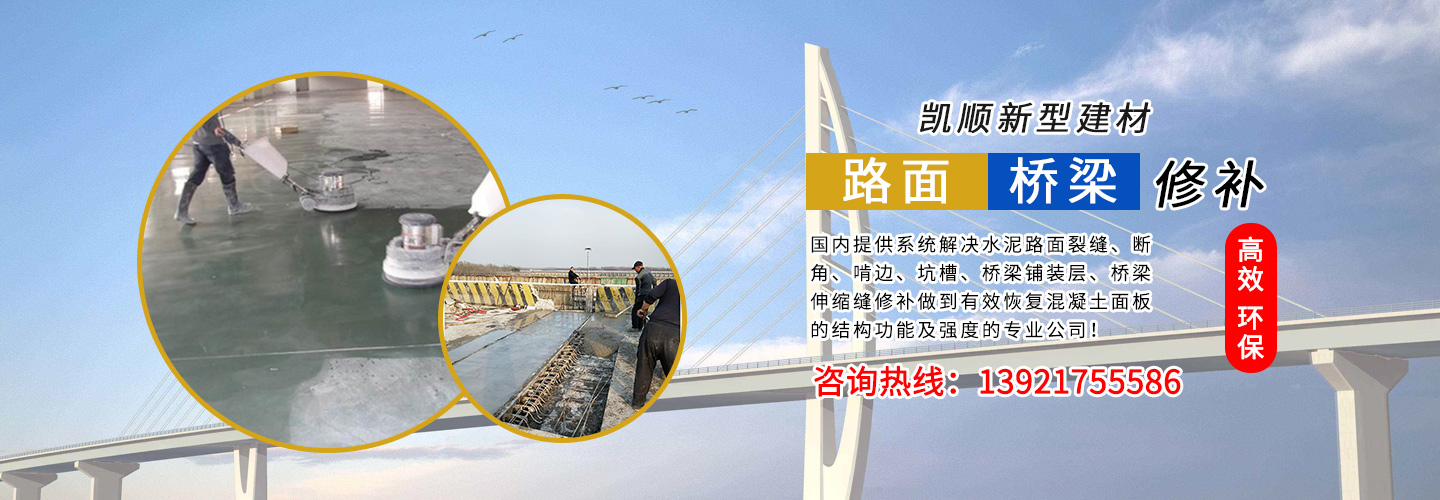 江蘇凱順新型建材有限公司是國(guó)內(nèi)提供系統(tǒng)解決水泥路面裂縫、斷角、啃邊、坑槽、橋梁鋪裝層、橋梁伸縮縫修補(bǔ)做到有效恢復(fù)混凝土面板的結(jié)構(gòu)功能及強(qiáng)度的專(zhuān)業(yè)公司!為市政工程、高速、國(guó)道、省道、縣鄉(xiāng)道路的改造及大修、中修等大型工程提供了快速、高效、環(huán)保、經(jīng)濟(jì)系統(tǒng)方案和技術(shù)支持!
